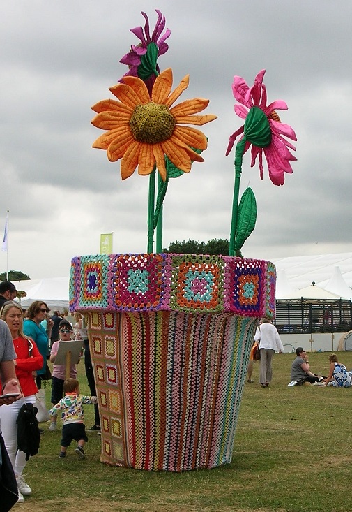 yarn bombed flower pot c