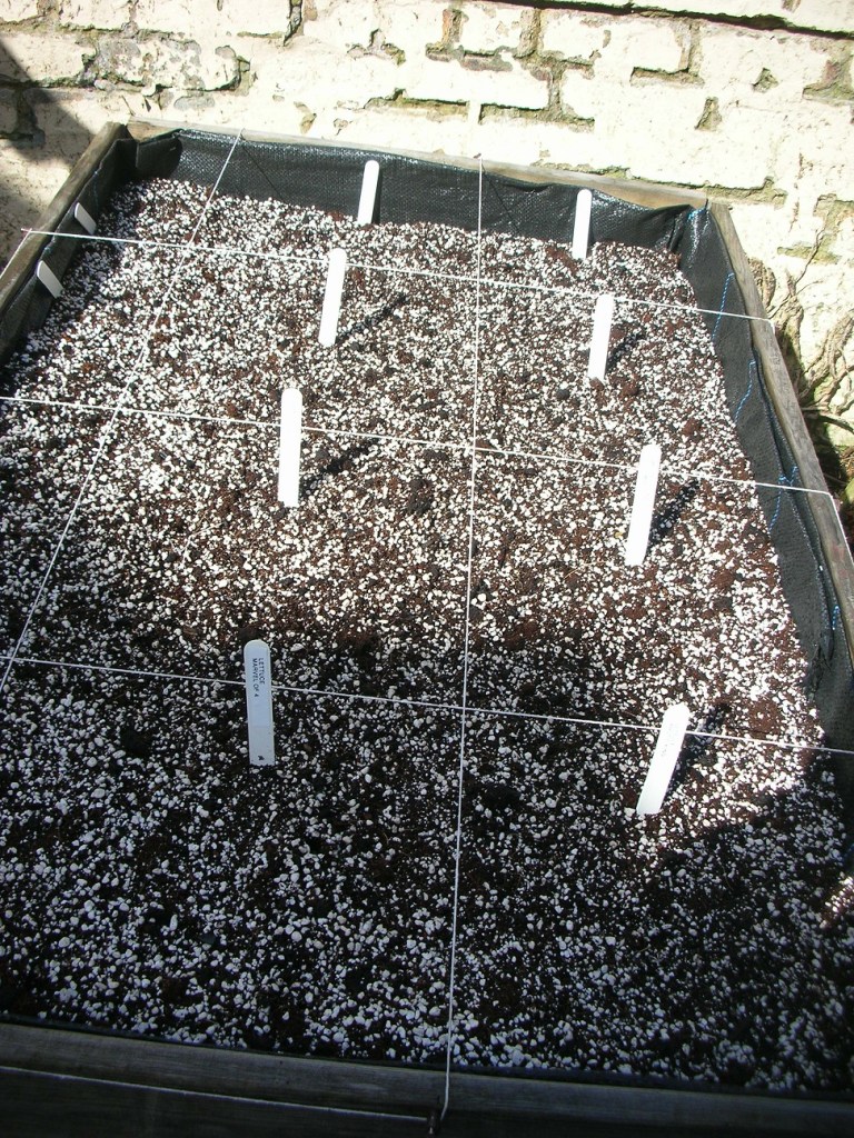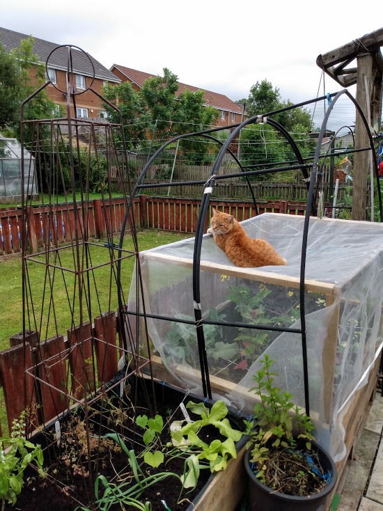 The success of my Square Foot Gardening raised bed is dependent on leaving the compost untouched, no pressure on it, not even a cat’s paw. The smug owners can relax, no cat will be injured but I wish I could send them the bill.