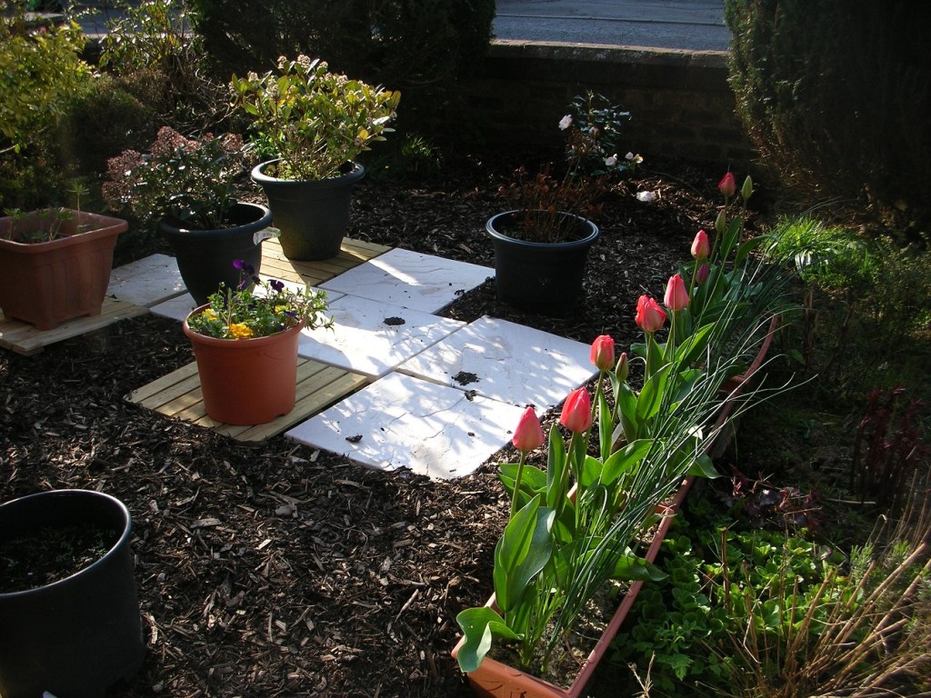 What I found odd was I was told to shred the cardboard and put it in the compost! It was also suggested I get a site of my own if I wanted to promote its use. Takes all sorts I suppose. 😀 The spikey bits with the tulips are Drumstick Alliums, they flower after the tulips die down.