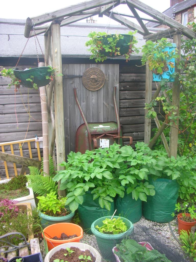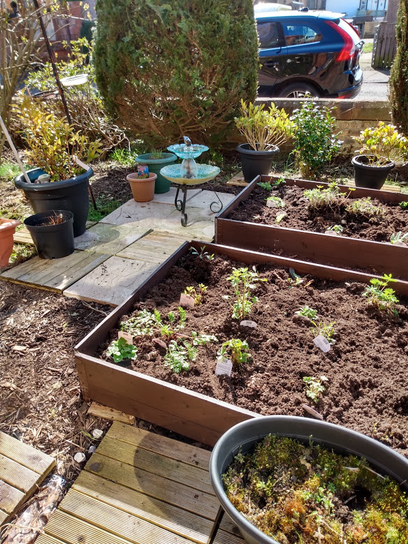 I am quite happy to turn the clock back and go back to the beginning. It is quite a challenge again. I’ve also had to reduce the containers, as I was given a garden arch in a gift. Initially it was to replace my old garden arch which had collapsed, leaving it topless. However, the new arch was nothing like it and much too small so it has replace a couple of containers and is now an arbour with my garden seat in it. My reduction in growing vegetables has been replaced with a collection of herbs.