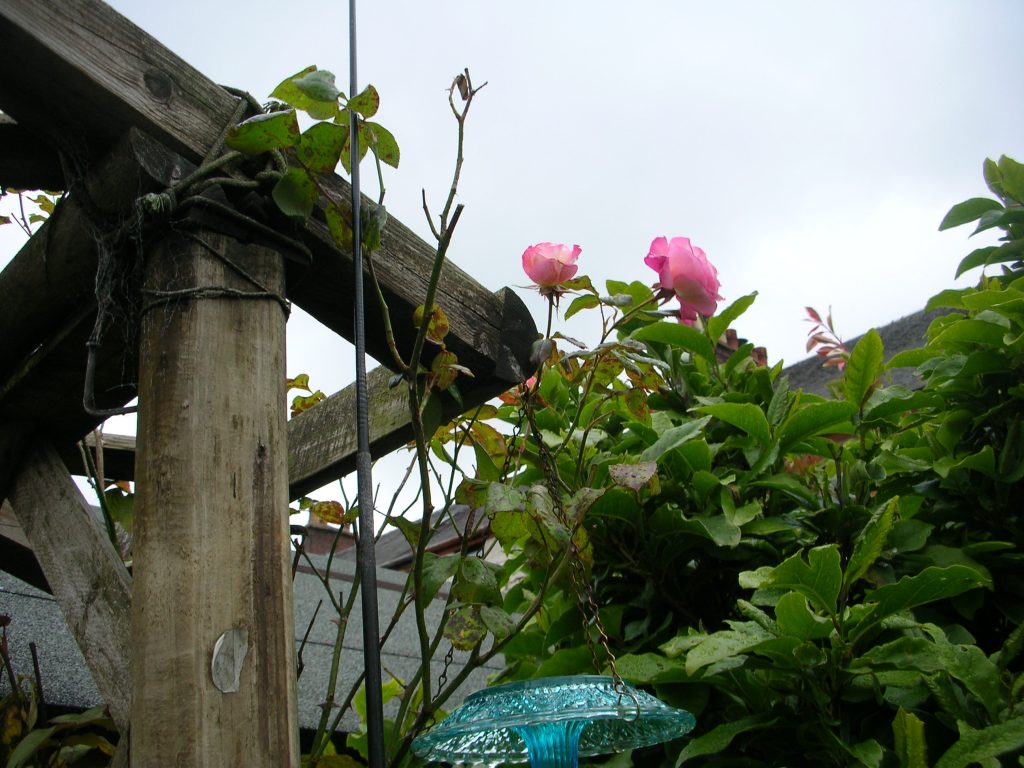 In the beginning, I brought my arch with me when I moved house. It was now at the side door of the garage I had. When the garage was removed and a new shed built, the arch found it’s new life over the path. It’s probably about thirty years old, but time and weather started taking its toll and slowly the joints started to separate. The top of it eventually collapsed and I refused to let the sides be removed, so it stood like the Pillars of Hercules until I found an abandoned piece of trellis to rest of the top to provide a support for my climbing ‘Handle’ rose.