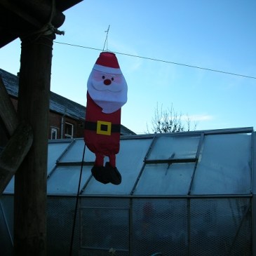 Santa windsock brings a smile to the neighbours and adds a bit more colour to a dark, damp corner. … More Christmas Cheer
